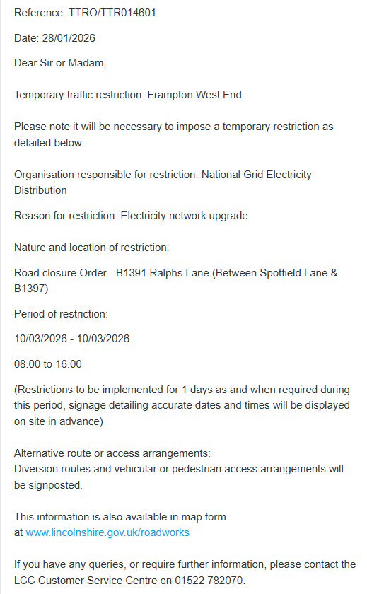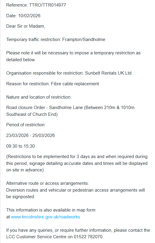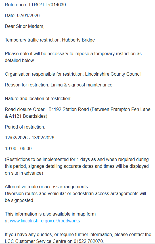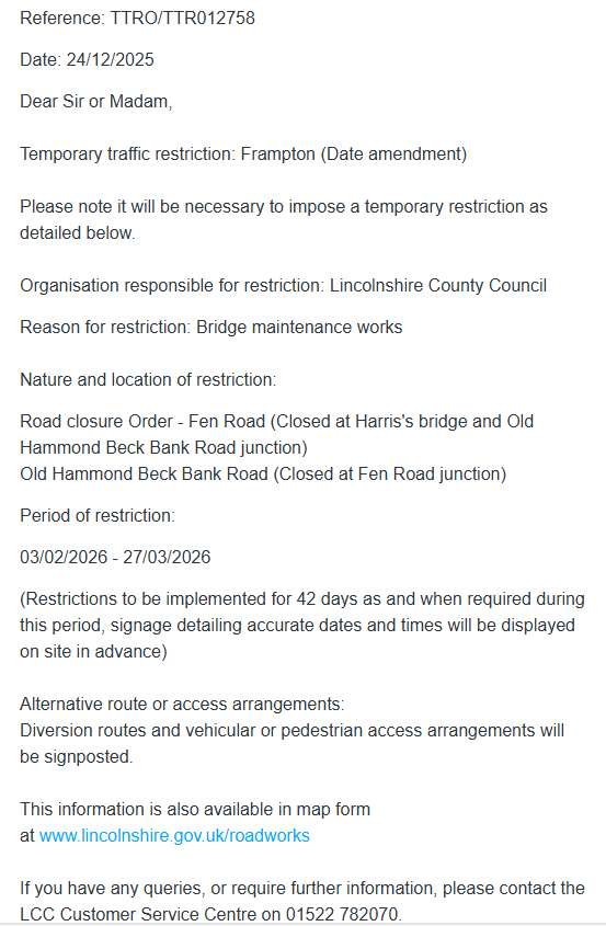 Fen Road & Old Hammond Beck Bank Road 03/02/26-27/03/26