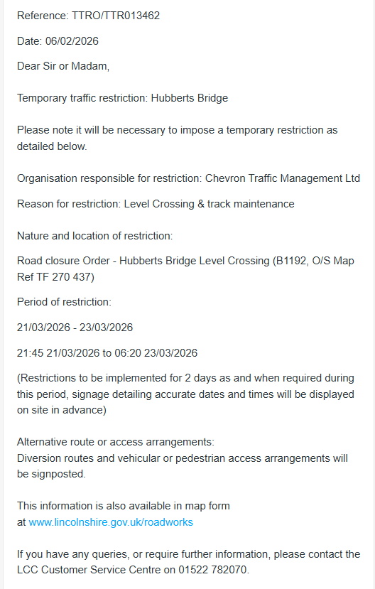 Hubberts Bridge Level Crossing 21/03/26-23/03/26 - 21:45-06:20